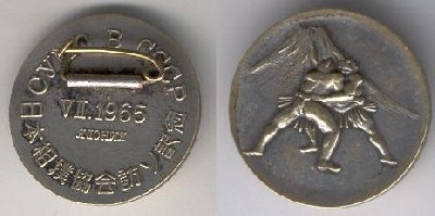 Значок. На обороте надпись "Сумо в СССР. VII 1965. Япония". Диаметр 2,5 см.